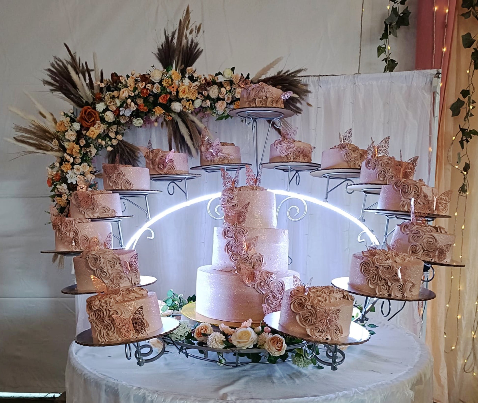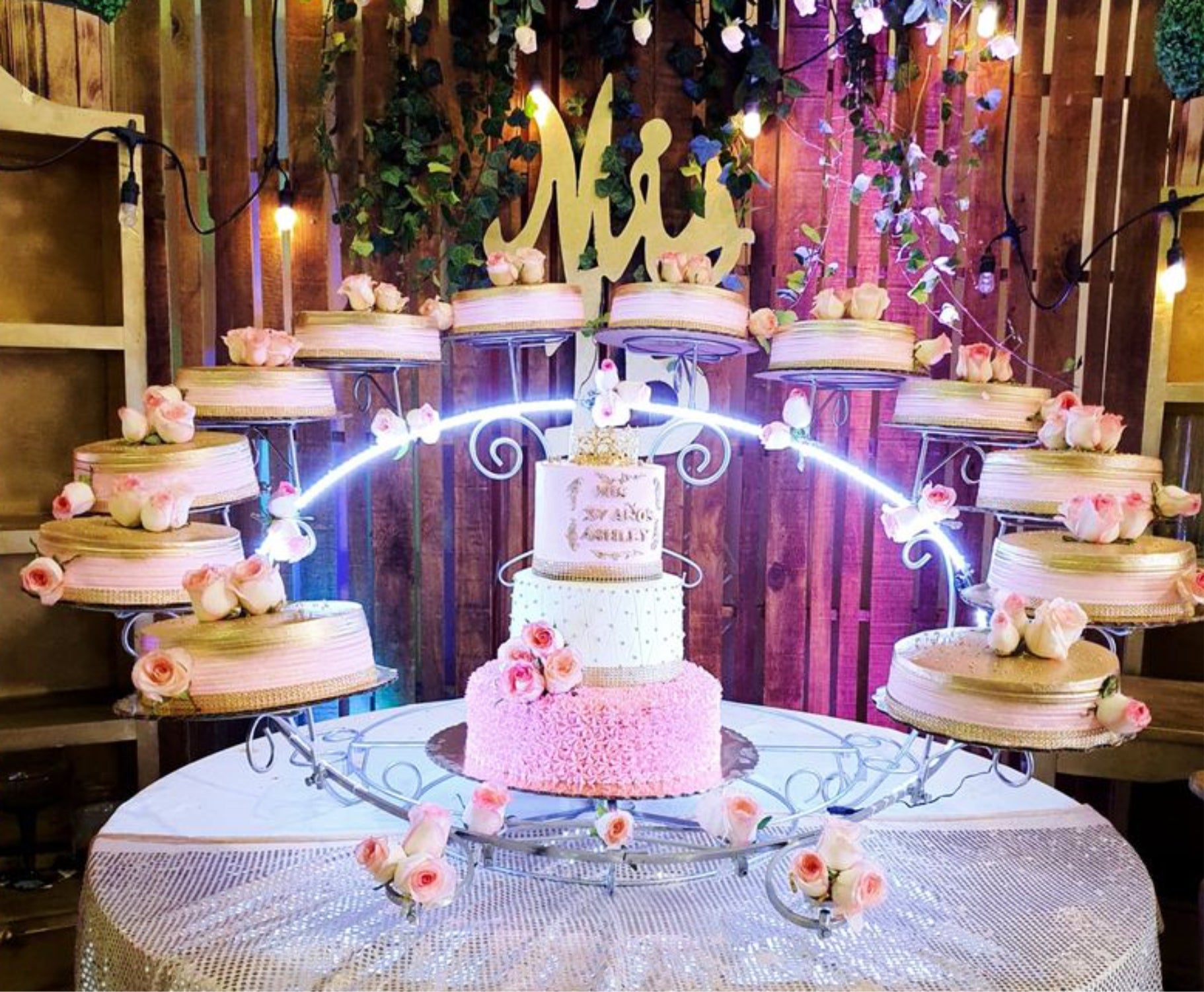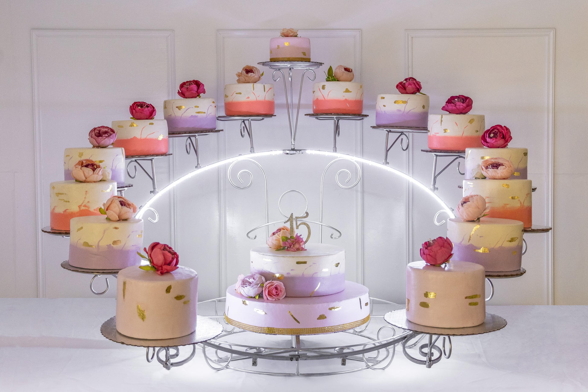 Los aros son desmontables, así que puedes colocar los 15 aros o solo 13 o 12, como en las fotografías que se muestran. Incluye luz led añadida a la base y un eliminador para conectar directo a la corriente y hacer brillar tus pasteles, a tus clientes les encantará este hermoso detalle